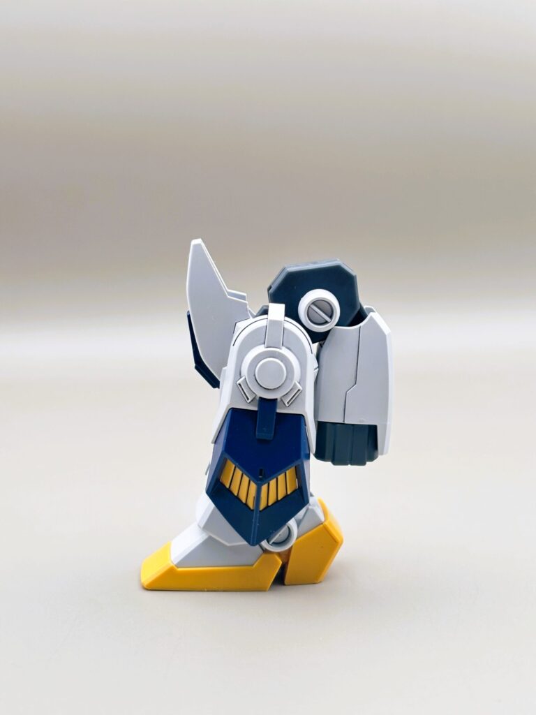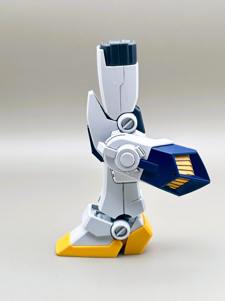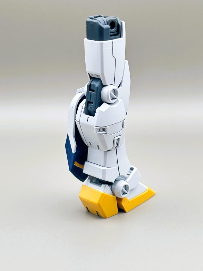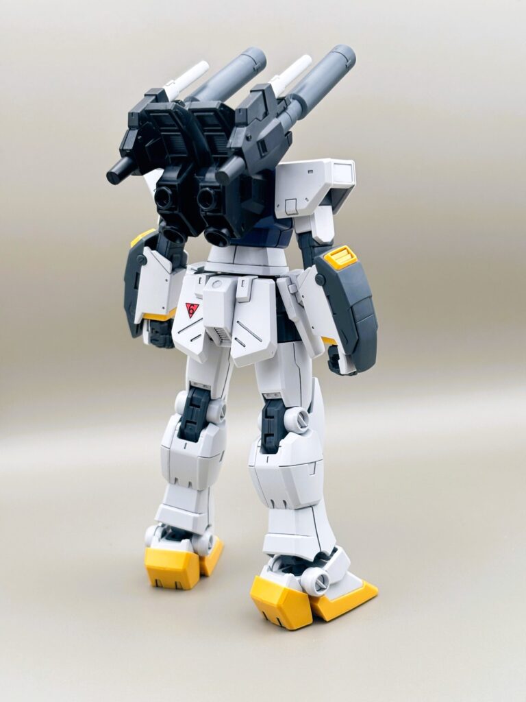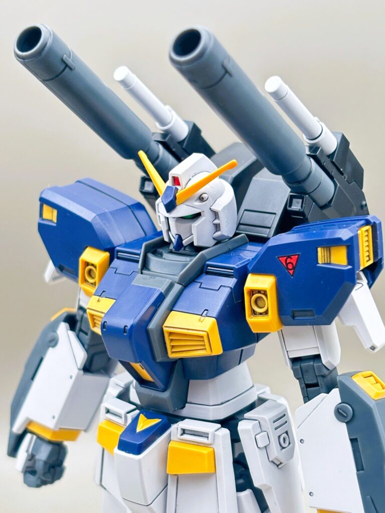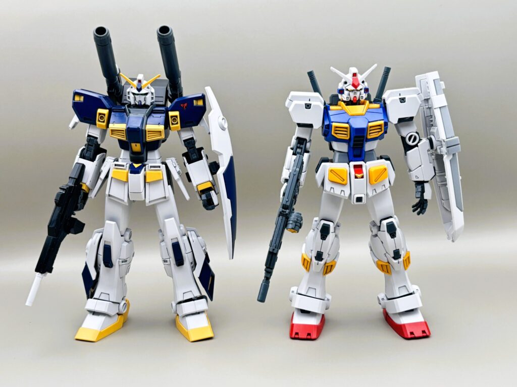 RX-78ガンダムをベースにしつつも、キャノン砲や脚部の増加装甲によって、非常に「強そう」なシルエットになっています。