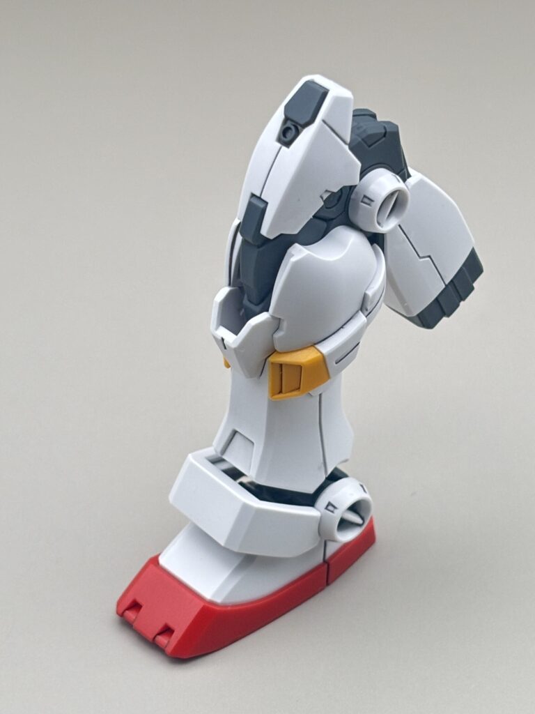 脚部: 膝を曲げると装甲がスライドする連動ギミック(!)を搭載。HGでここまでのこだわりは珍しいです。