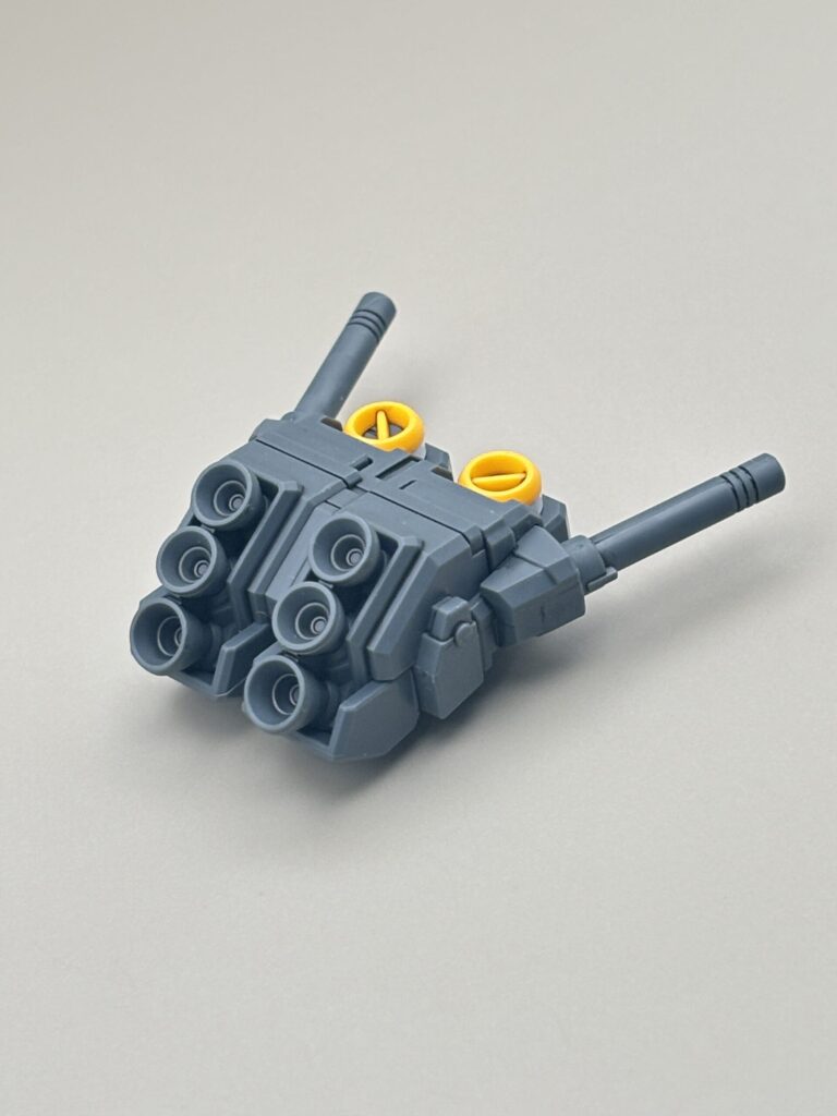フルアーマーの巨大キャノンがない代わりに、本来の「6基のバーニア」が密集したバックパックが再現されています。このメカメカしさがたまりません。