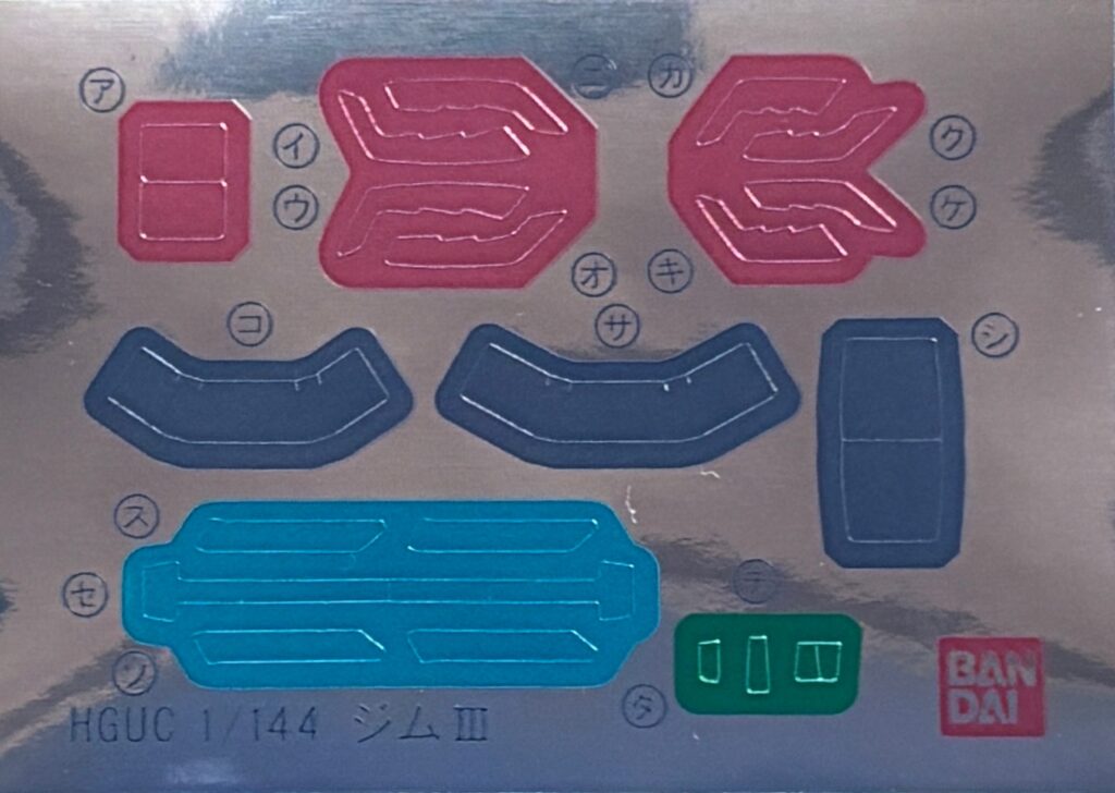 右下のセンサー用のシールは、説明書には記載されていませんが、おそらくミサイル・ランチャー用でしょう。