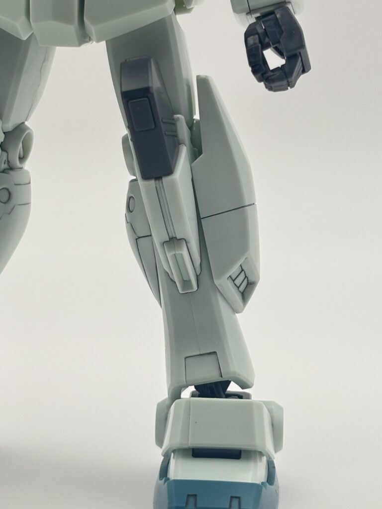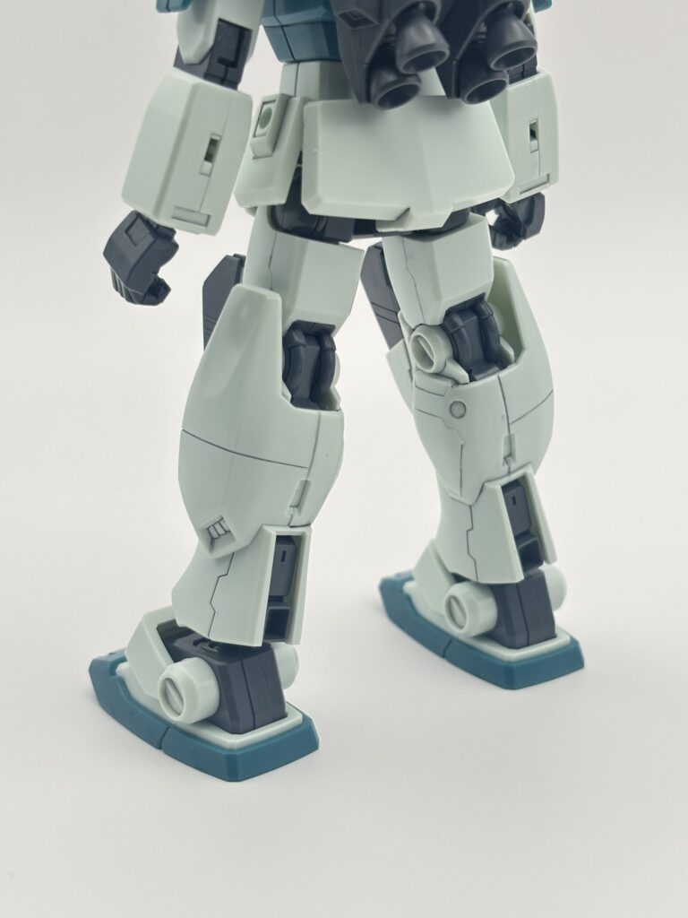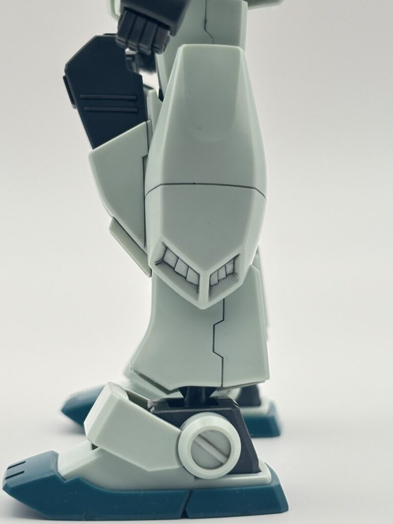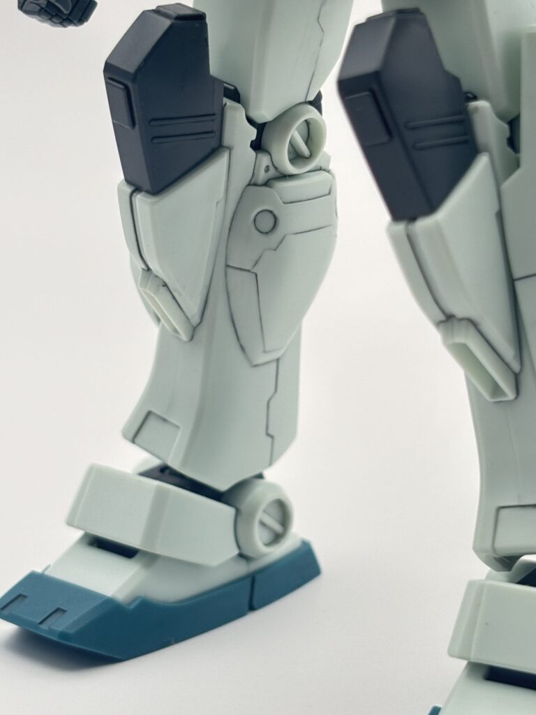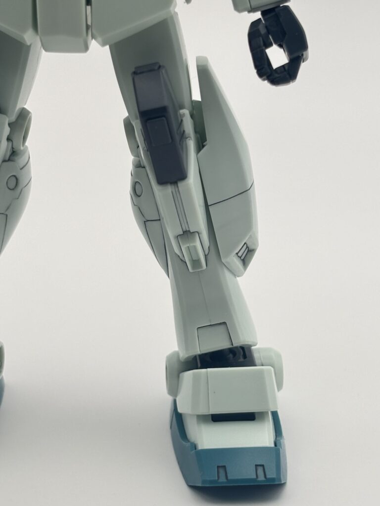 ジムⅢの印象を決定づける大型脚部。サブスラスターやモールドなどかなり立体感が増して、ボリュームがあります。