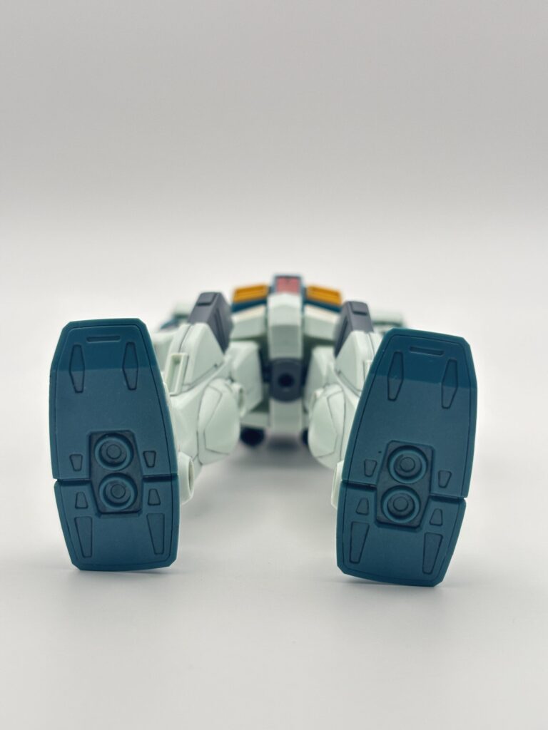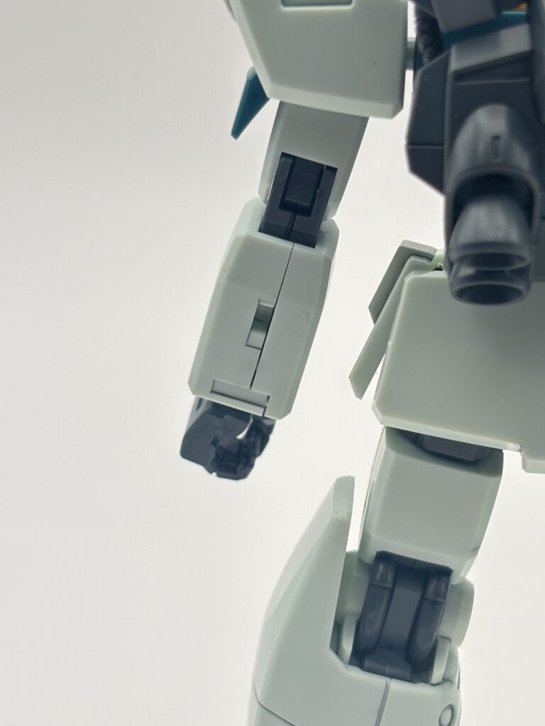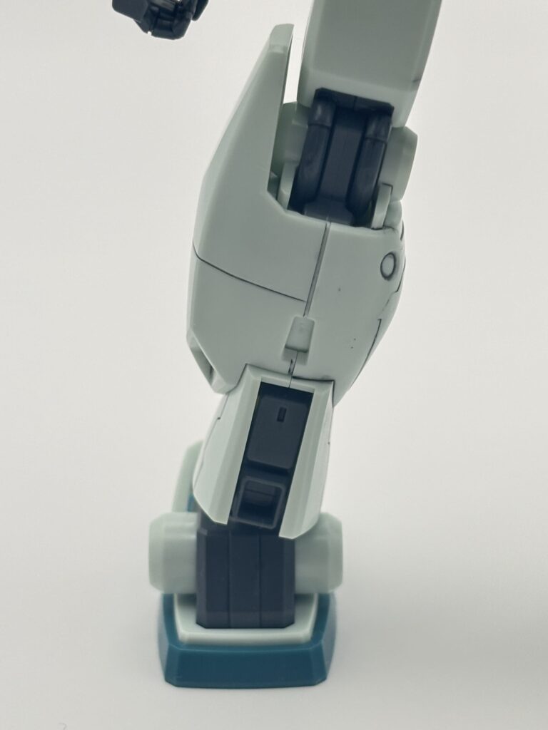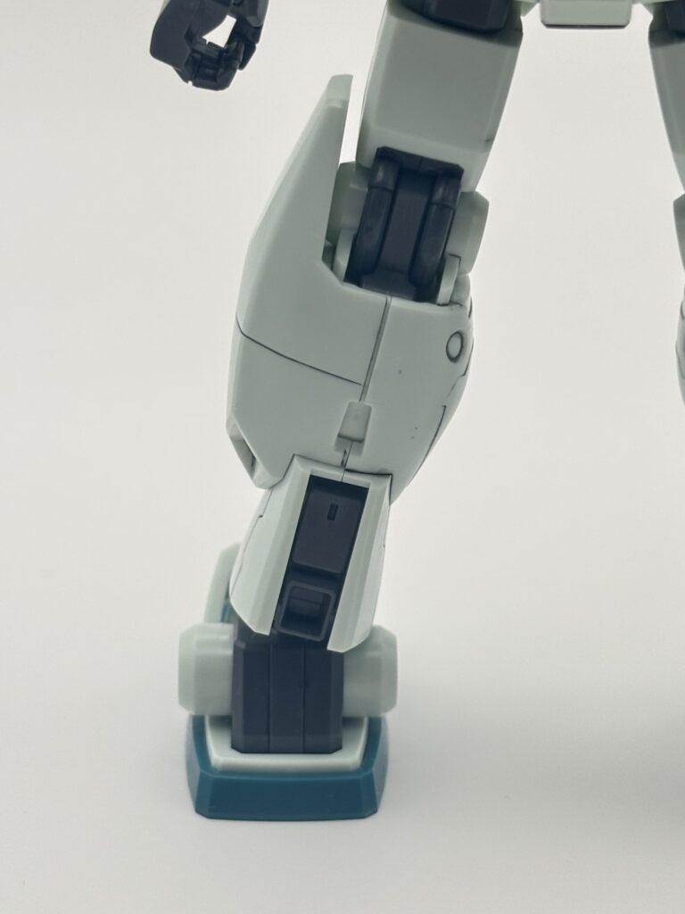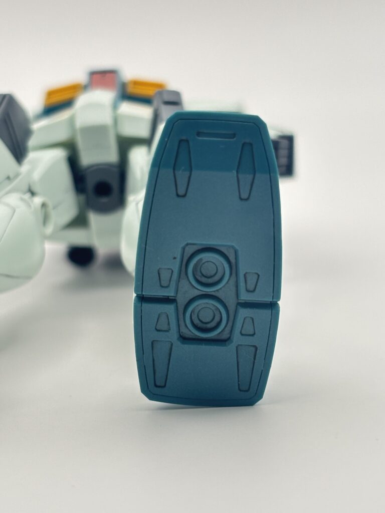 ジムⅢの印象を決定づける大型脚部。サブスラスターやモールドなどかなり立体感が増して、ボリュームがあります。