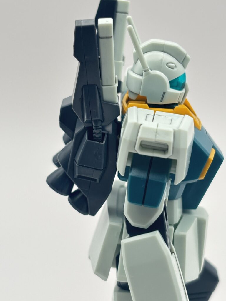 ショルダーアーマーにはミサイル・ポッド、サイドアーマーにはミサイル・ランチャーを装備し、ジムⅡからの強化点を感じます。